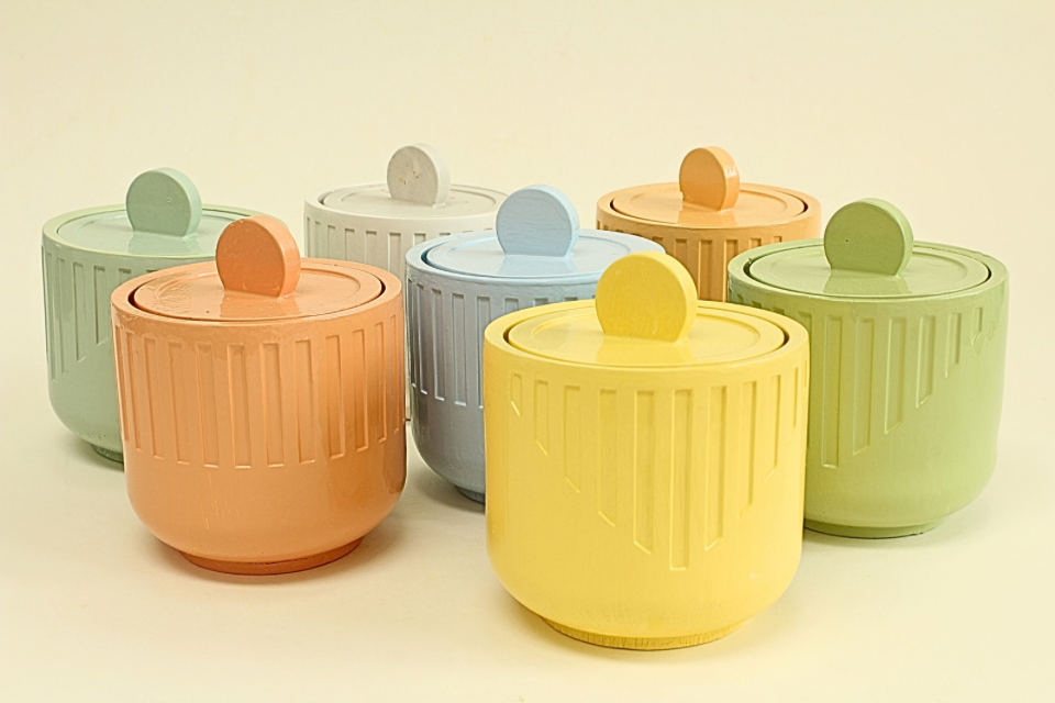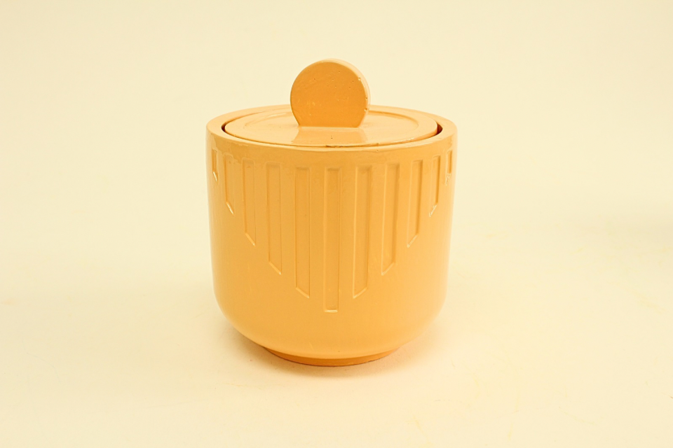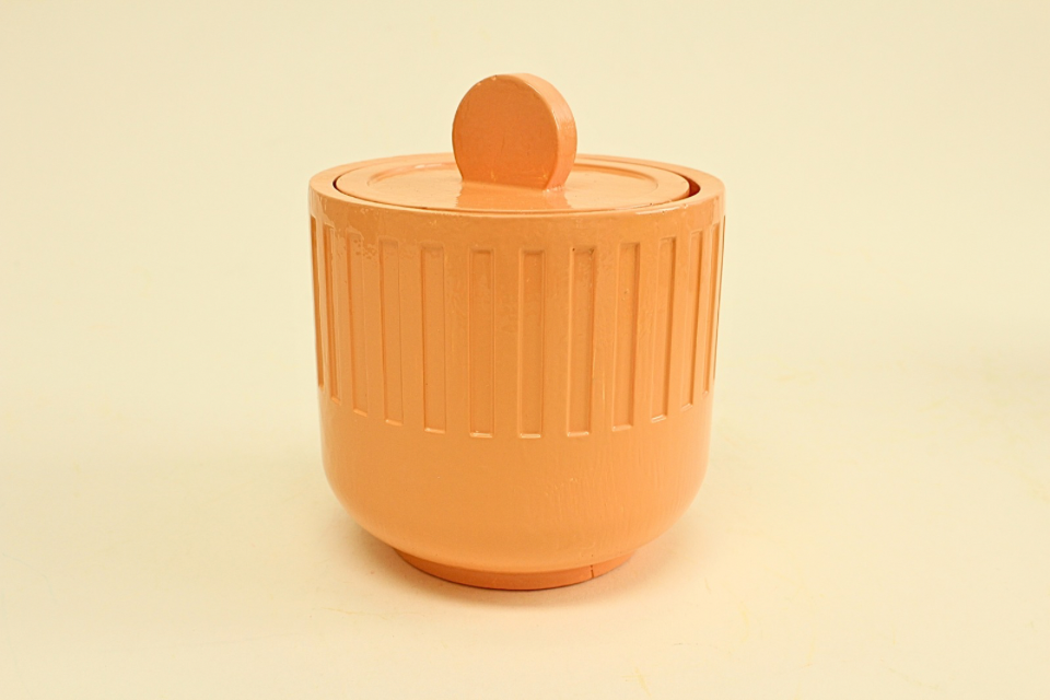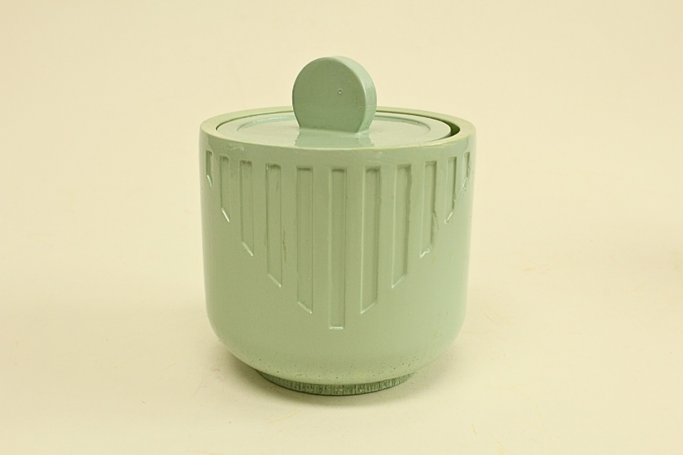 A lidded container for dry snacks, beauty tools, or desk items, designed to keep essentials organized with style.