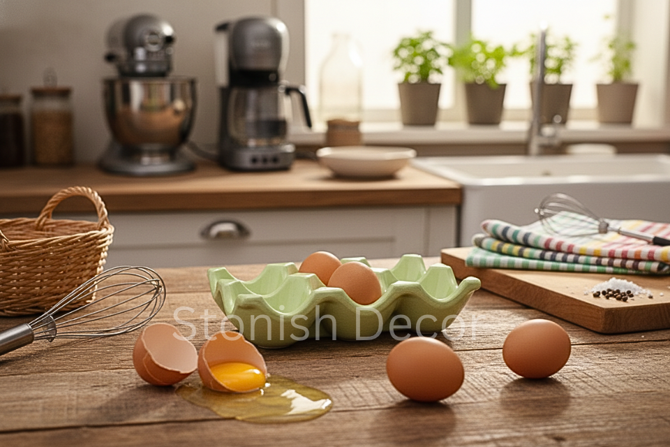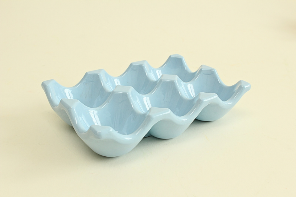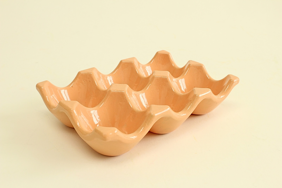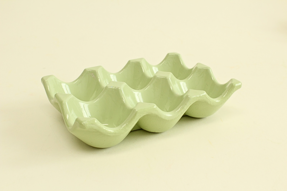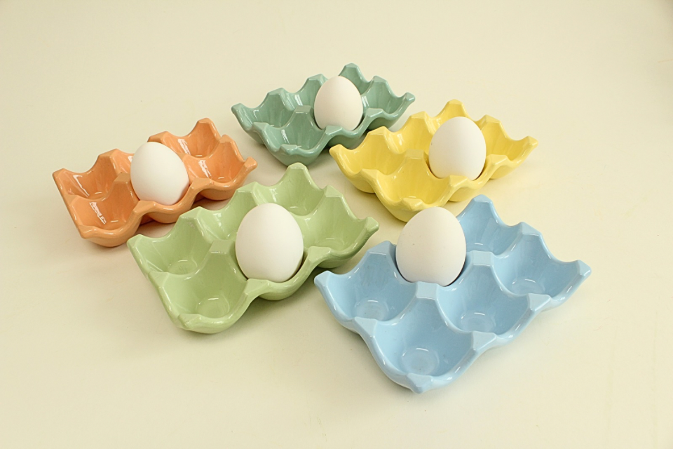 Handcrafted egg holder in beautiful colors, stylish enough to go from kitchen to table.