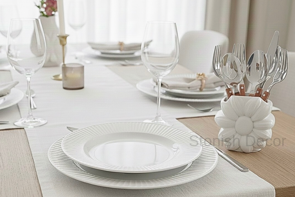 Each piece is sealed for splash resistance. To clean simply wipe gently with a damp cloth, and avoid bleach or harsh cleaners. Wipe up spills promptly to prevent staining. Not suitable for dishwasher or microwave use.